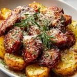 This Oven-Roasted Cajun Chicken and Garlic Potatoes with Parmesan is a flavorful, easy weeknight dinner that combines tender chicken with crispy, garlicky potatoes. Infused with Cajun spices and topped with melted Parmesan, this dish is sure to satisfy your cravings for a comforting yet exciting meal.