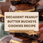 Peanut Butter Buckeye Cookies are decadent treats featuring rich chocolate cookies topped with a creamy peanut butter filling and finished with a smooth dark chocolate ganache. These cookies combine the best of chocolate and peanut butter flavors in a soft, slightly underbaked base, layered with a sweet, buttery filling and a luscious chocolate topping, perfect for holidays or any special occasion.