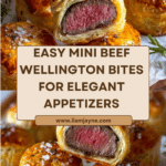 Mini Beef Wellington Bites are elegant, savory appetizers perfect for parties or special occasions. These bite-sized treats combine tender seared beef and rich mushroom duxelles wrapped in flaky puff pastry. They’re easy to make and sure to impress your guests.