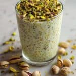 - Stir and Serve: Before serving, stir the oats to evenly distribute any settled liquid. Top with chopped pistachios and any optional toppings such as fresh fruit, chia seeds, or coconut flakes for added flavor and texture.