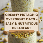 Pistachio Oats is a creamy, nutritious overnight oats recipe perfect for a quick and healthy breakfast. This recipe combines rolled oats soaked in milk and yogurt, sweetened naturally with honey or maple syrup, and enriched with crunchy chopped pistachios. Refrigerated overnight, it offers a ready-to-eat meal packed with fiber, protein, and healthy fats.