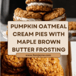 Delicious homemade pumpkin oatmeal cream pies featuring soft and chewy pumpkin oat cookies sandwiched with a luscious maple brown butter cream cheese frosting. These spiced cookies are perfect for fall and bring a comforting, indulgent treat that’s easy to make and sure to impress.