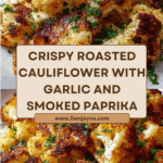 This roasted cauliflower recipe delivers crispy, golden-brown florets seasoned with garlic powder, smoked paprika, and a touch of salt and pepper. Perfect as a healthy side dish or snack, it can be topped with Parmesan cheese and fresh parsley for added flavor.
