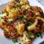 This roasted cauliflower recipe delivers crispy, golden-brown florets seasoned with garlic powder, smoked paprika, and a touch of salt and pepper. Perfect as a healthy side dish or snack, it can be topped with Parmesan cheese and fresh parsley for added flavor.