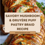 A flaky, golden puff pastry braid filled with creamy mushrooms, caramelized onions, Gruyère cheese, and fresh herbs, this Savory Mushroom & Gruyère Puff Pastry Braid is a perfect appetizer or brunch centerpiece. It’s easy to make and full of rich, comforting flavors that everyone will love.
