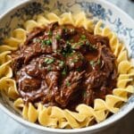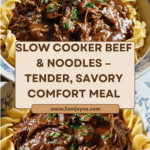 Slow Cooker Beef & Noodles is a comforting and hearty meal perfect for busy days. Tender chuck roast slowly cooks until fall-apart tender, then combines with egg noodles in a rich, savory broth. This simple, no-fuss recipe delivers maximum flavor with minimal prep.