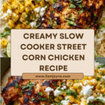 Slow Cooker Street Corn Chicken is a creamy, flavorful dish inspired by Mexican street corn. It combines tender chicken with sweet corn, tangy cheese, and spices, all cooked effortlessly in a slow cooker. Perfect for busy days, this recipe delivers rich taste with minimal prep.