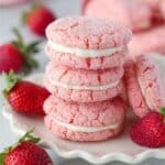 These Soft Strawberry Cake Mix Sandwich Cookies are a delightful twist on classic sandwich cookies, featuring tender strawberry-flavored cookies with a creamy almond buttercream filling. Perfectly sweet and soft, they’re easy to make and sure to impress.