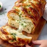 9. Cool and Serve: Allow the bread to cool in the pan for at least 10 minutes before removing. Slice or pull apart to enjoy the rich layers of garlic butter and melted cheese.