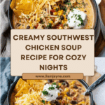 Southwest Chicken Soup is a comforting and flavorful dish packed with black beans, corn, and tender chicken simmered in a spicy, creamy broth. This versatile recipe can be made in a slow cooker, pressure cooker, or on the stove, making it perfect for busy weeknights or cozy weekends.