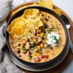 Keywords: Southwest chicken soup, black bean soup, creamy chicken soup, slow cooker soup, pressure cooker soup, stovetop chicken soup, healthy chicken soup