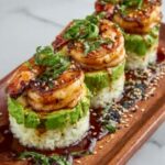 Spicy Shrimp Sushi Stacks are a vibrant, layered appetizer or main course inspired by traditional Japanese sushi. Combining seasoned sushi rice, creamy and spicy shrimp, and a refreshing avocado-cucumber mixture, these no-cook stacks offer a perfect balance of flavors and textures. They are easy to assemble, visually appealing, and perfect for entertaining or a delightful weeknight meal.