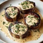 - Serve the Dish: Slice the rested steak against the grain. Plate and generously drizzle the bourbon garlic cream sauce over the top. Garnish with chopped fresh parsley for color and a fresh flavor finish, and serve immediately.