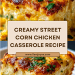 Street Corn Chicken Casserole is a creamy, flavorful baked dish that combines shredded cooked chicken with sweet corn, creamy cheeses, and Mexican-inspired spices. Topped with a crunchy cheese and tortilla chip layer, this comforting casserole is perfect for a hearty dinner that’s easy to assemble and full of smoky, tangy, and savory flavors.