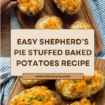 This Shepherd’s Pie Baked recipe transforms classic shepherd’s pie flavors into a delicious stuffed baked potato dish. Perfectly baked russet potatoes are hollowed out and filled with a savory ground beef and vegetable mixture, topped with creamy mashed potatoes and melted cheddar cheese for a comforting and hearty meal.