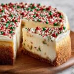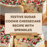 Keywords: Cheesecake, Sugar Cookie, Christmas Dessert, Holiday Baking, Festive Cheesecake, Sprinkle Cookies, Sugar Cookie Frosting