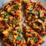 • Make-Ahead: Prepare the chicken, sauce, and toppings ahead of time. Assemble and bake the pizza within a day for best results.