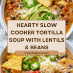 This hearty and flavorful Tortilla Soup is a comforting blend of tender lentils, beans, fresh vegetables, and vibrant spices simmered to perfection in a slow cooker. Garnished with crunchy crushed tortilla chips and creamy cheese, it’s a delicious vegetarian soup ideal for a cozy meal.
