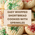 Whipped Shortbread Cookies are delightfully light and tender buttery cookies with a delicate crumb, made by whipping butter and powdered sugar until fluffy, then combining with flour, cornstarch, and vanilla. They’re pressed into cookies, topped with colorful sprinkles, and baked at a low temperature until just set – perfect for holiday treats or anytime snacking.