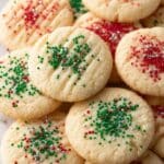 Whipped Shortbread Cookies are delightfully light and tender buttery cookies with a delicate crumb, made by whipping butter and powdered sugar until fluffy, then combining with flour, cornstarch, and vanilla. They’re pressed into cookies, topped with colorful sprinkles, and baked at a low temperature until just set – perfect for holiday treats or anytime snacking.