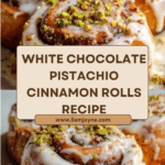 These White Chocolate Pistachio Cinnamon Rolls combine classic cinnamon-sugar swirls with crunchy pistachios and a luscious white chocolate ganache topping. Perfect for a sweet breakfast or indulgent dessert, these rolls feature a tender, fluffy dough enriched with butter and milk, layered with a spiced cinnamon-pistachio filling, and finished with creamy ganache and extra nuts for texture.