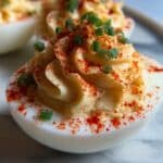 These wonderful crab-stuffed deviled eggs are a delightful twist on a classic appetizer. Creamy, flavorful, and topped with fresh chives, they make an elegant addition to any gathering or party. The combination of lump crab meat with classic seasonings creates a rich and savory bite.